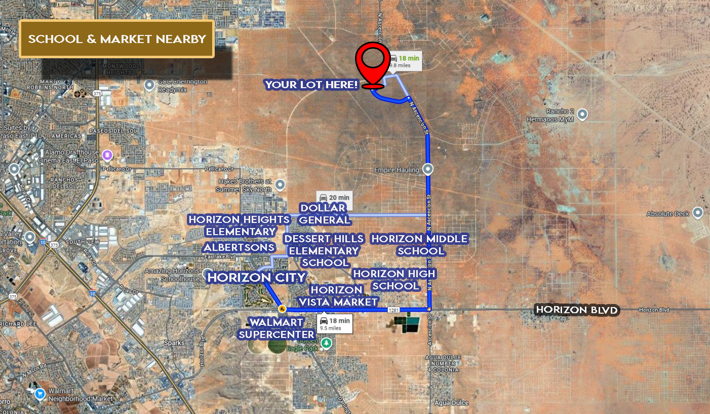 Owner Financing Available – 0.33-acre lot in Horizon City Estates! This unrestricted property offers the freedom to enjoy RV living or build your ideal site-built, mobile, or manufactured home. Conveniently located just approximately 42 minutes via I-10 from downtown El Paso, you’ll enjoy the perfect balance of peaceful surroundings and easy access to city amenities.