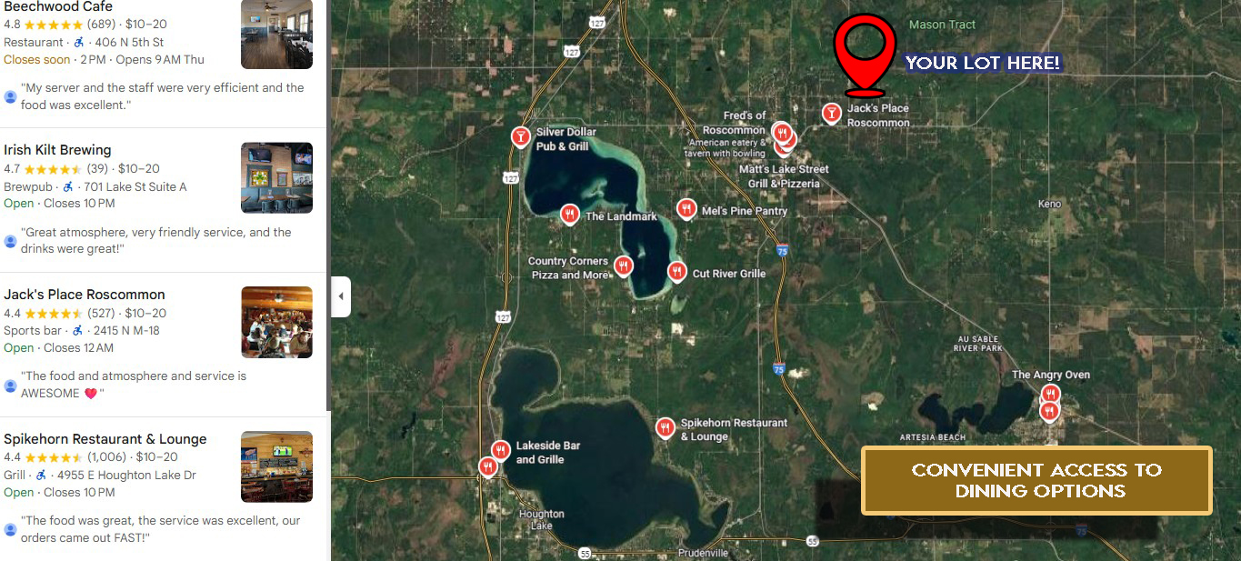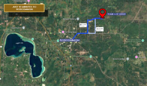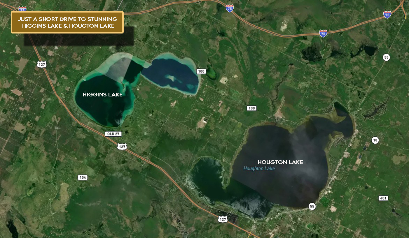 Located in Crawford County, just about 11 minutes via M-18 from downtown Roscommon, you’ll find convenient access to shops, restaurants, and schools. For outdoor enthusiasts, Higgins Lake, Houghton Lake and Lake Saint Helen are both nearby, offering incredible boating, fishing, and swimming opportunities. Golf lovers will enjoy being just minutes from top courses like Forest Dunes Golf Club—ranked among Michigan’s best.