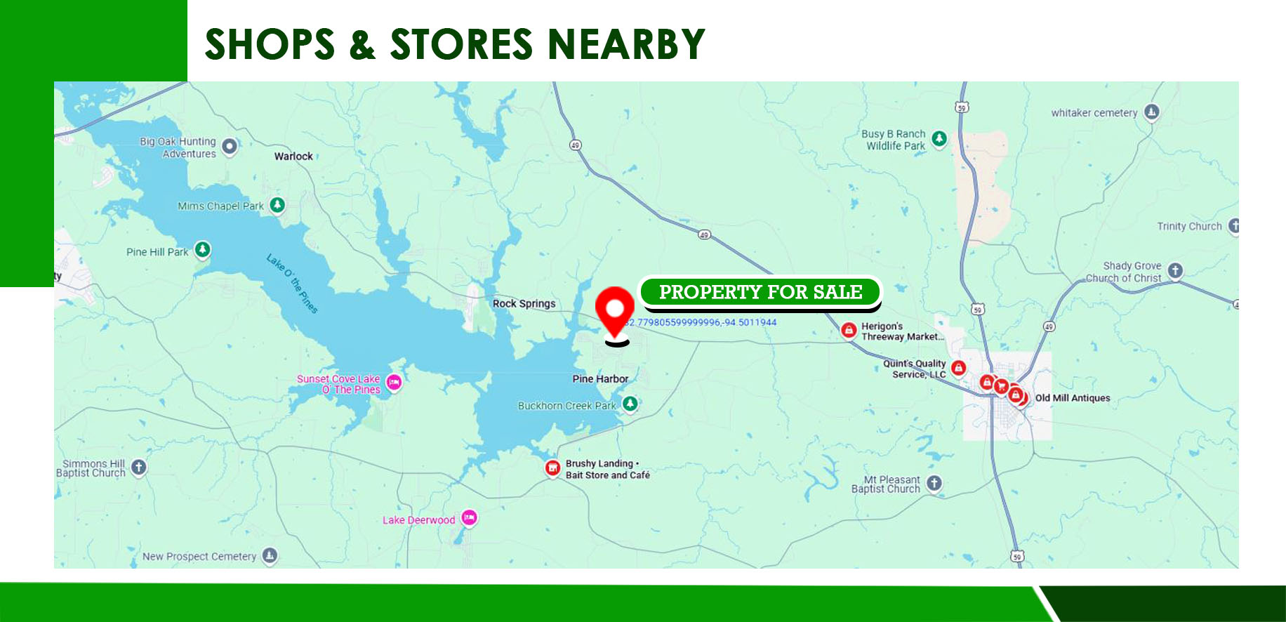 - Southwest Corner: 32.7799, -94.5014