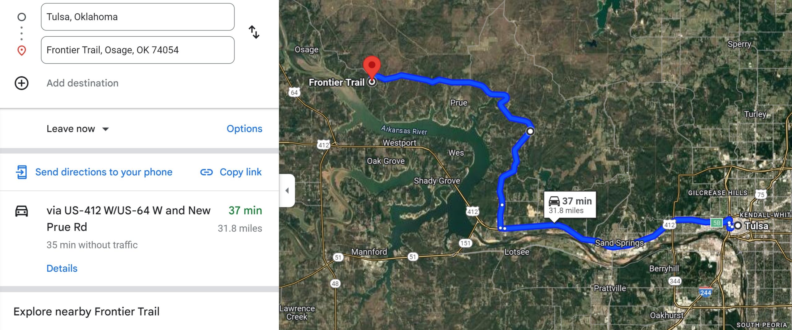 Frontier Shores is approximately 37 minutes from Tulsa via US-412, offering convenient access to shopping, dining, and entertainment while still enjoying the quiet of rural Oklahoma. Keystone Lake is located nearby, making it easy to enjoy boating, fishing, and lakeside activities. The area also features several golf courses just a short drive away, giving you plenty of options for outdoor leisure. Power and water are available at the street, and annual taxes are very low—ideal for easy and affordable land ownership.