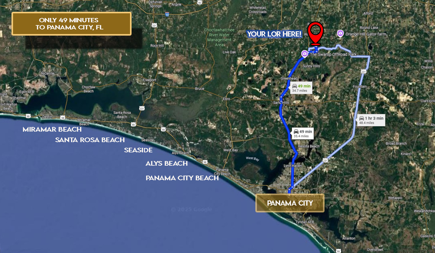 This large lot gives you extra room to build the home you’ve always dreamed of, whether a custom site-built residence or a private getaway where you can relax in peace. The property is located approximately 49 minutes via FL-77 from Panama City, giving you quick access to world-class beaches, shopping, dining, and entertainment.