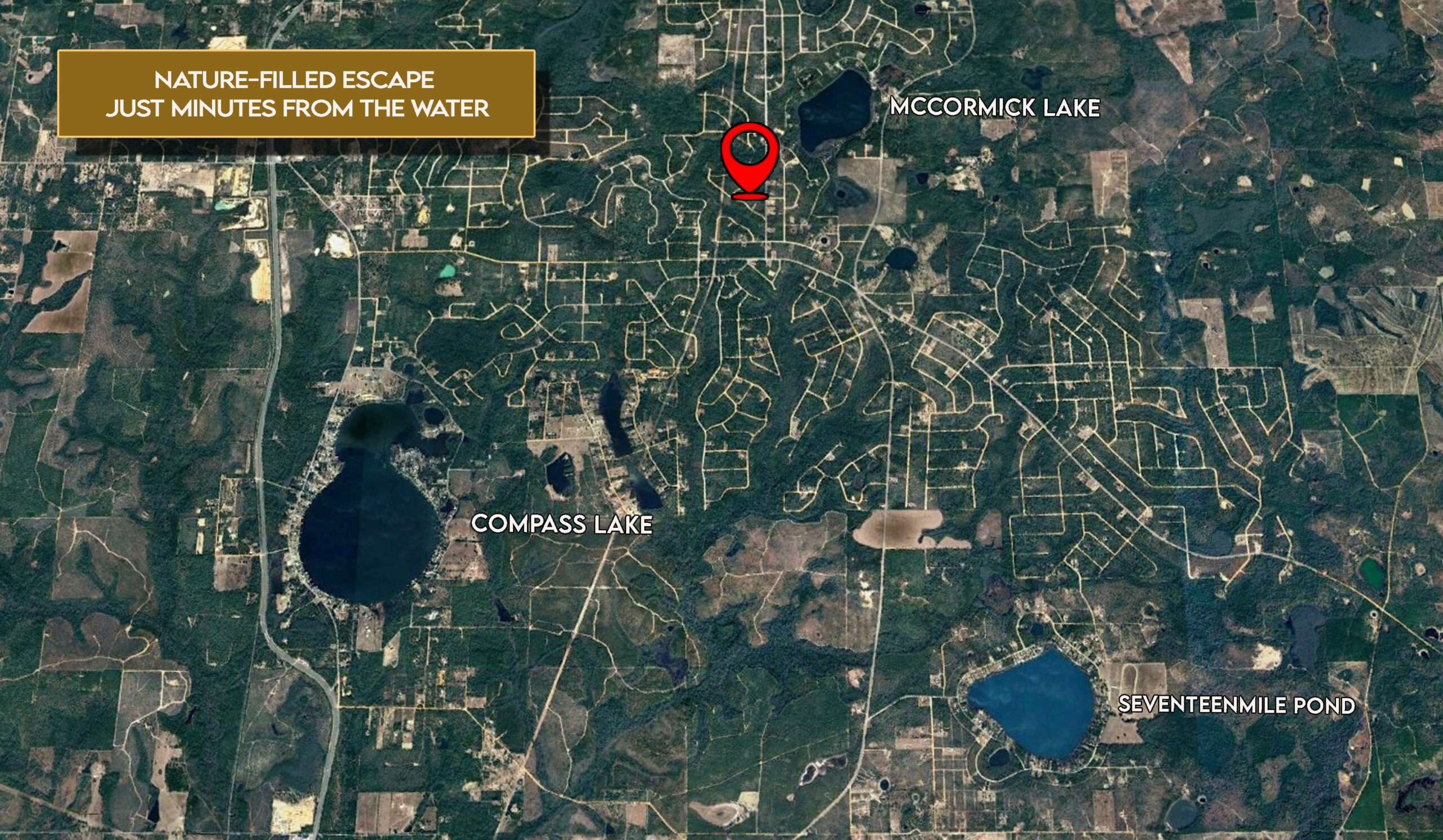 This large 1.58-acre lot in the Compass Lake Hills subdivision is uniquely positioned between McCormick Lake, Compass Lake, and Seventeenmile Pond—giving you endless opportunities for fishing, boating, swimming, and lakeside fun just minutes from your doorstep. With so much water recreation nearby, this property is ideal for creating a balanced lifestyle retreat or your forever home. Bring your RV or camper and start enjoying weekends under the stars while planning your dream build!