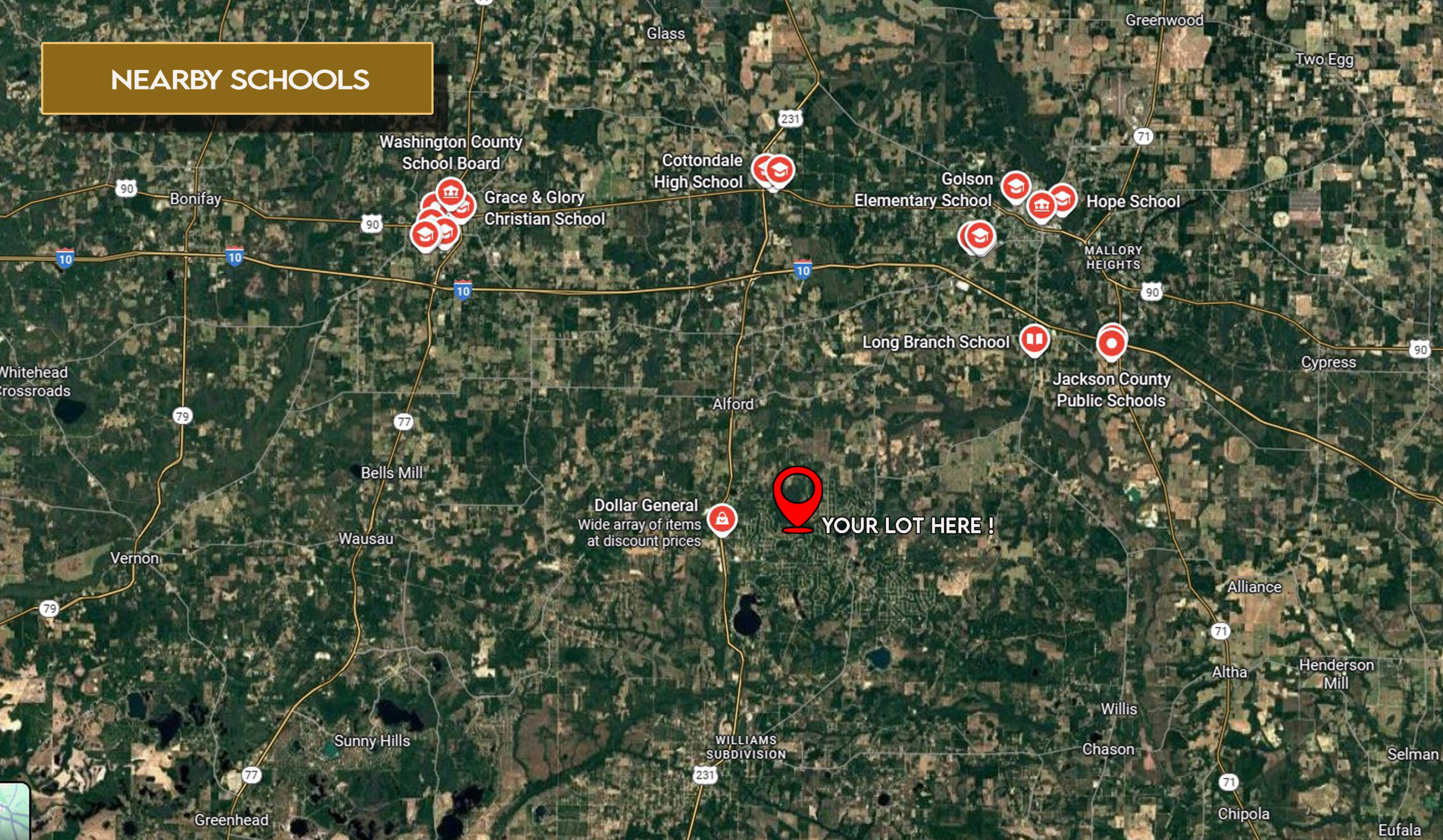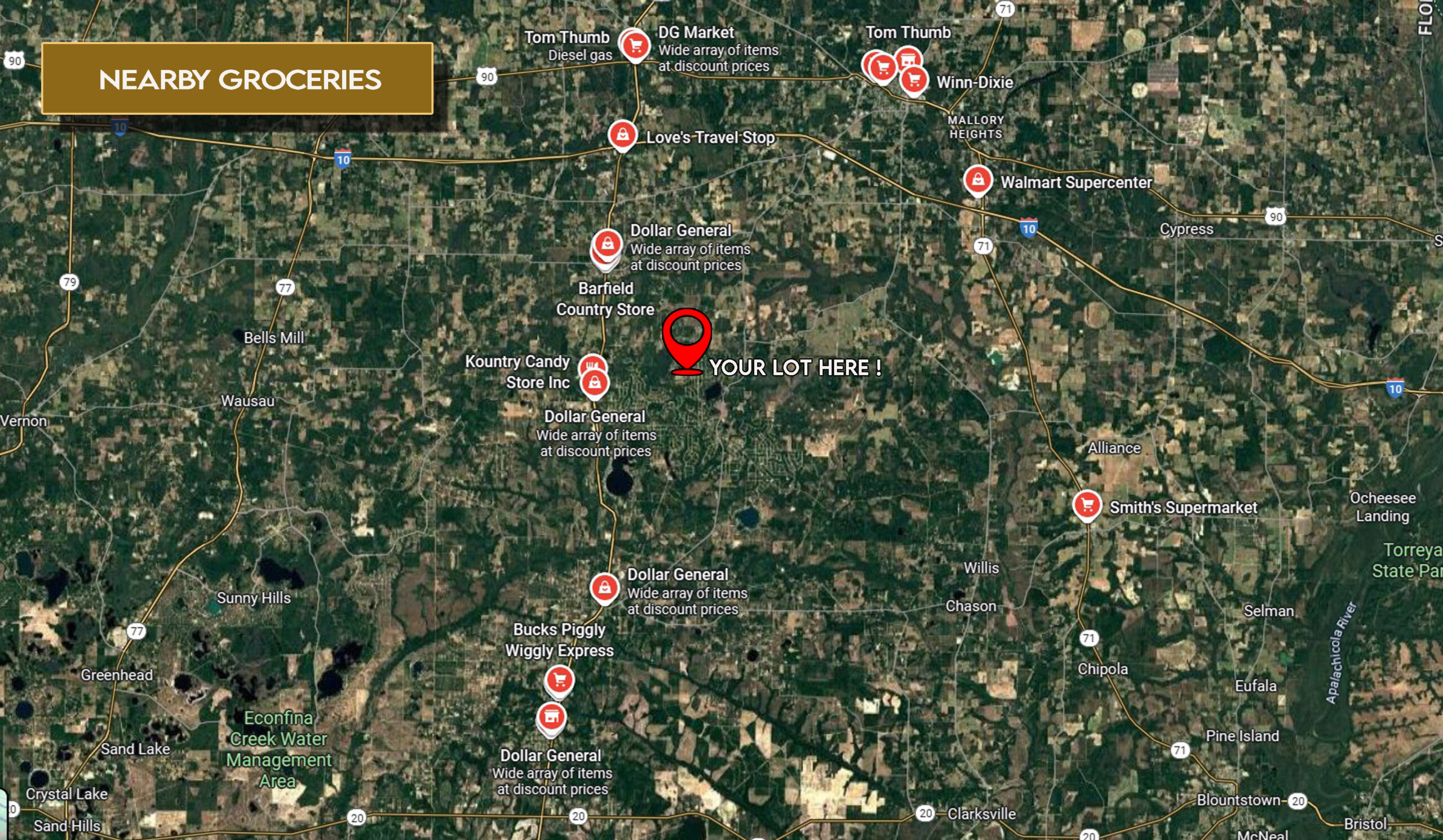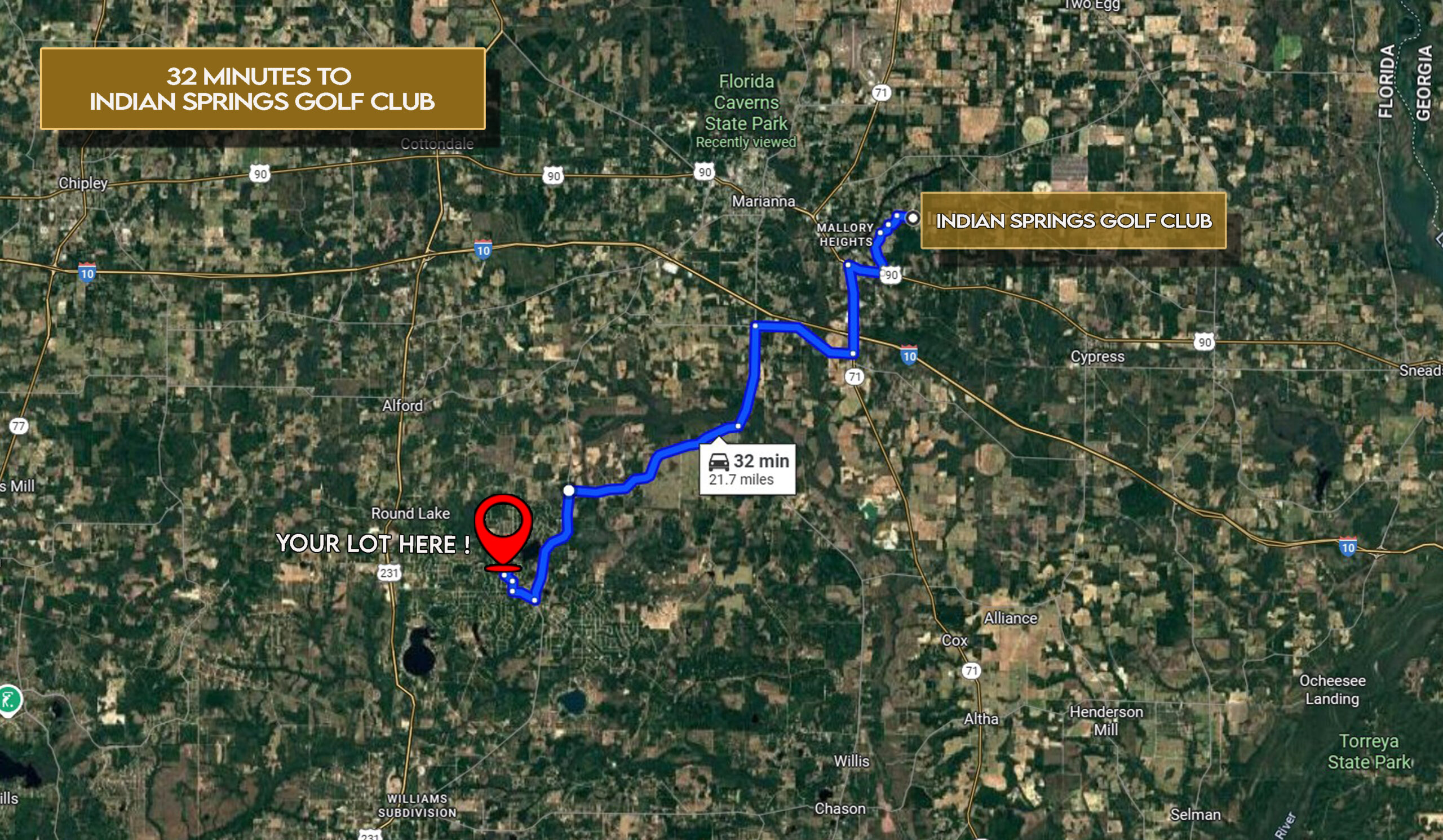 Surrounded by natural beauty, you’ll also find Indian Springs Golf Club just 32 minutes away, along with the charm and conveniences of Jackson County. The property sits about 35 minutes from Marianna, making shopping, dining, and community amenities easy to access. Power is available at the lot, and the flat terrain makes building simple and stress-free—whether you choose a site-built, mobile, or manufactured homes with a minimum of 1,000 sq ft.