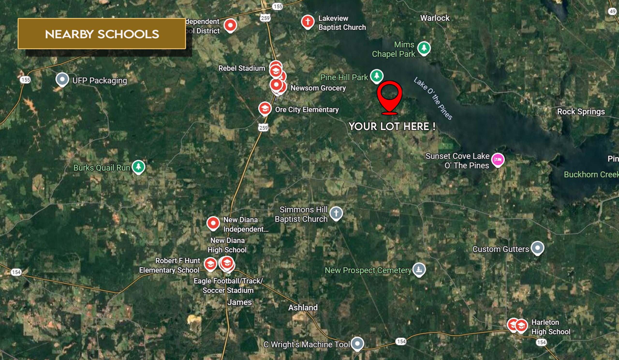 Just 10 minutes from Lake O’ the Pines via TX-49, you’ll have quick access to boating, fishing, and peaceful water views. Longview is approximately 35 minutes away via US-259, giving you the perfect balance of small-town relaxation and city convenience. Utilities—power and water—are available at the street, with septic needed. Owner financing is available with low down payments and easy monthly terms, making it simple to start your new chapter.