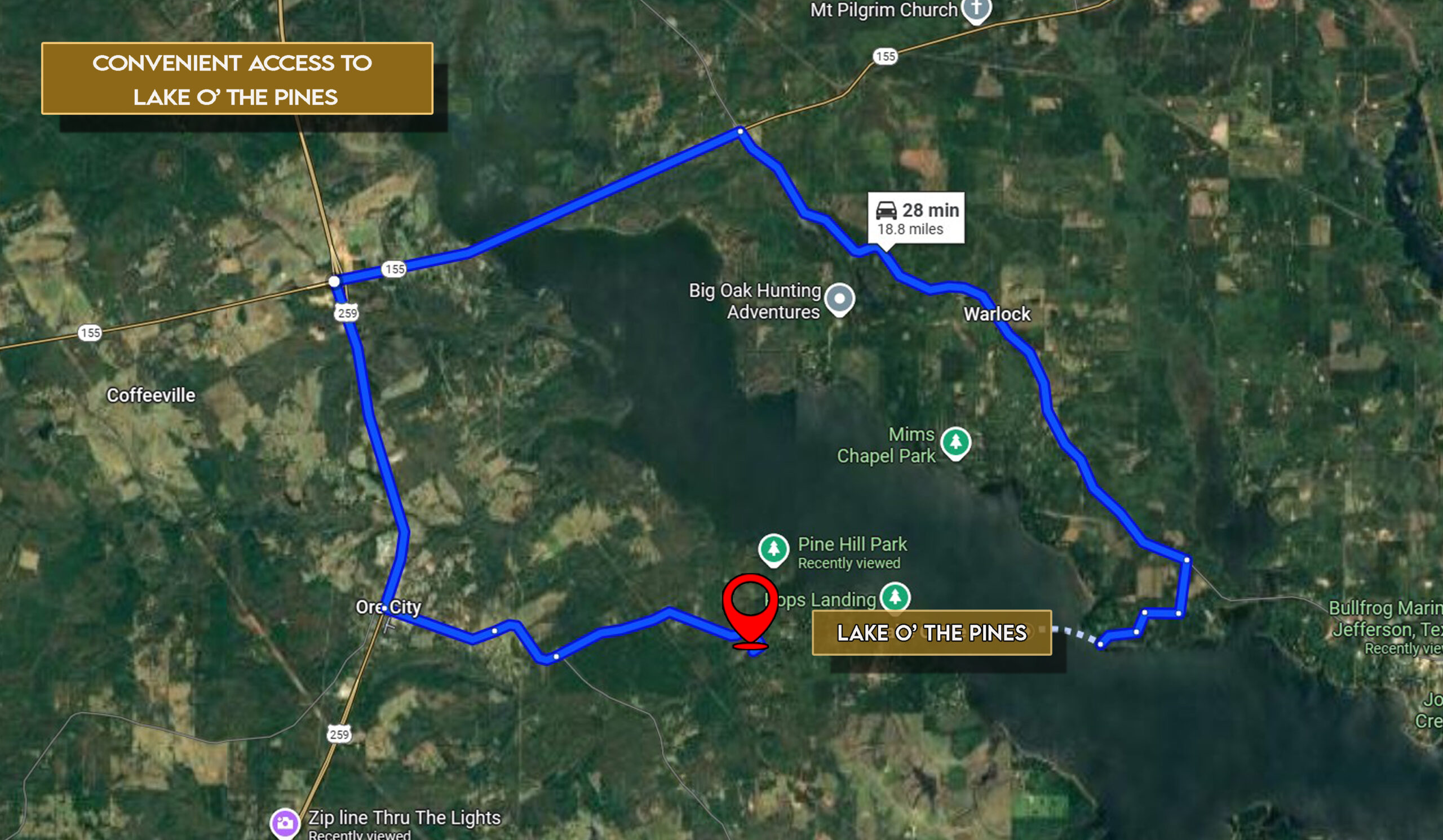 Just 10 minutes from Lake O’ the Pines via TX-49, you’ll have quick access to boating, fishing, and peaceful shorelines. The property sits in Marion County, Texas, approximately 35 minutes from Longview via US-259, giving you a perfect blend of quiet country life and easy access to shopping, dining, and entertainment. Utilities including power and water are available right at the street.