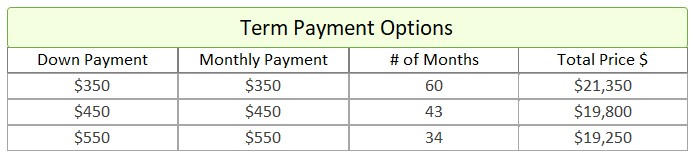 • Term Option 3: $550 down, $550 for 34 months, for a total price of $19,250
