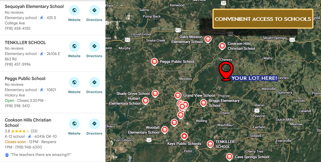 - Water: Water is provided by SDCRWA (918) 597‑2350