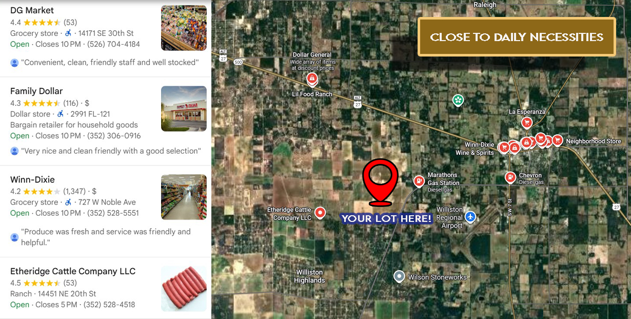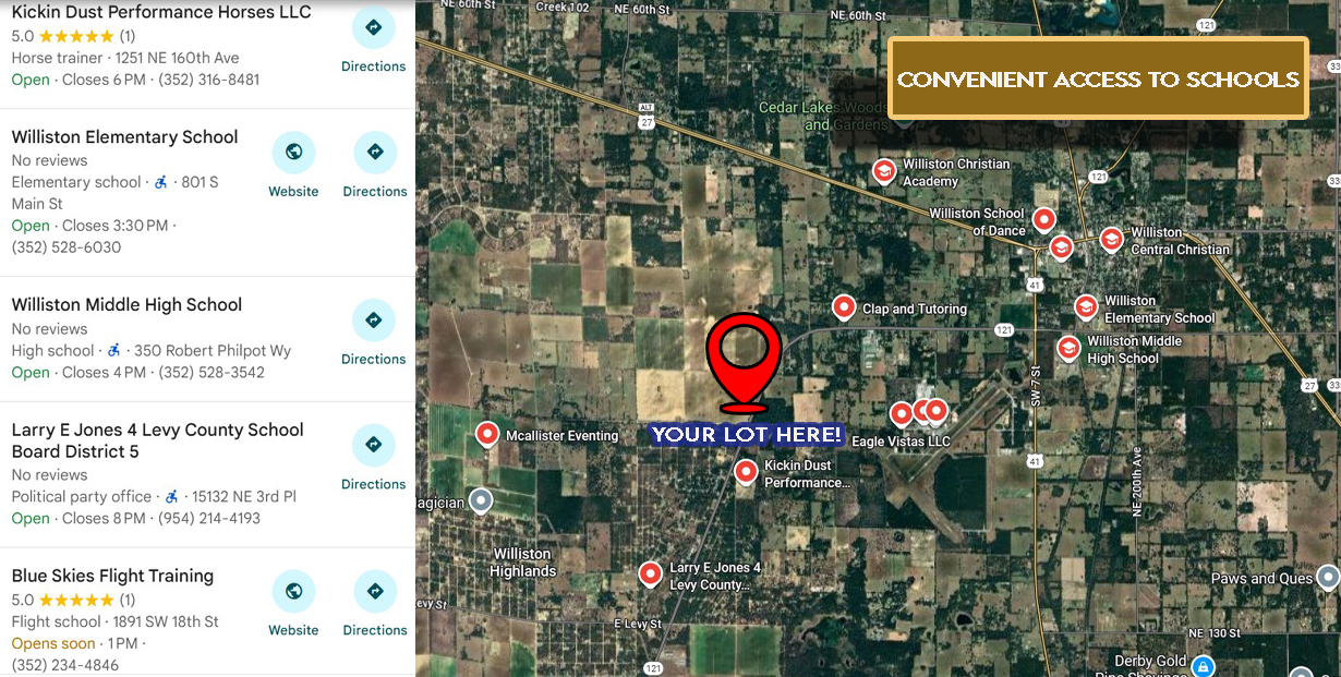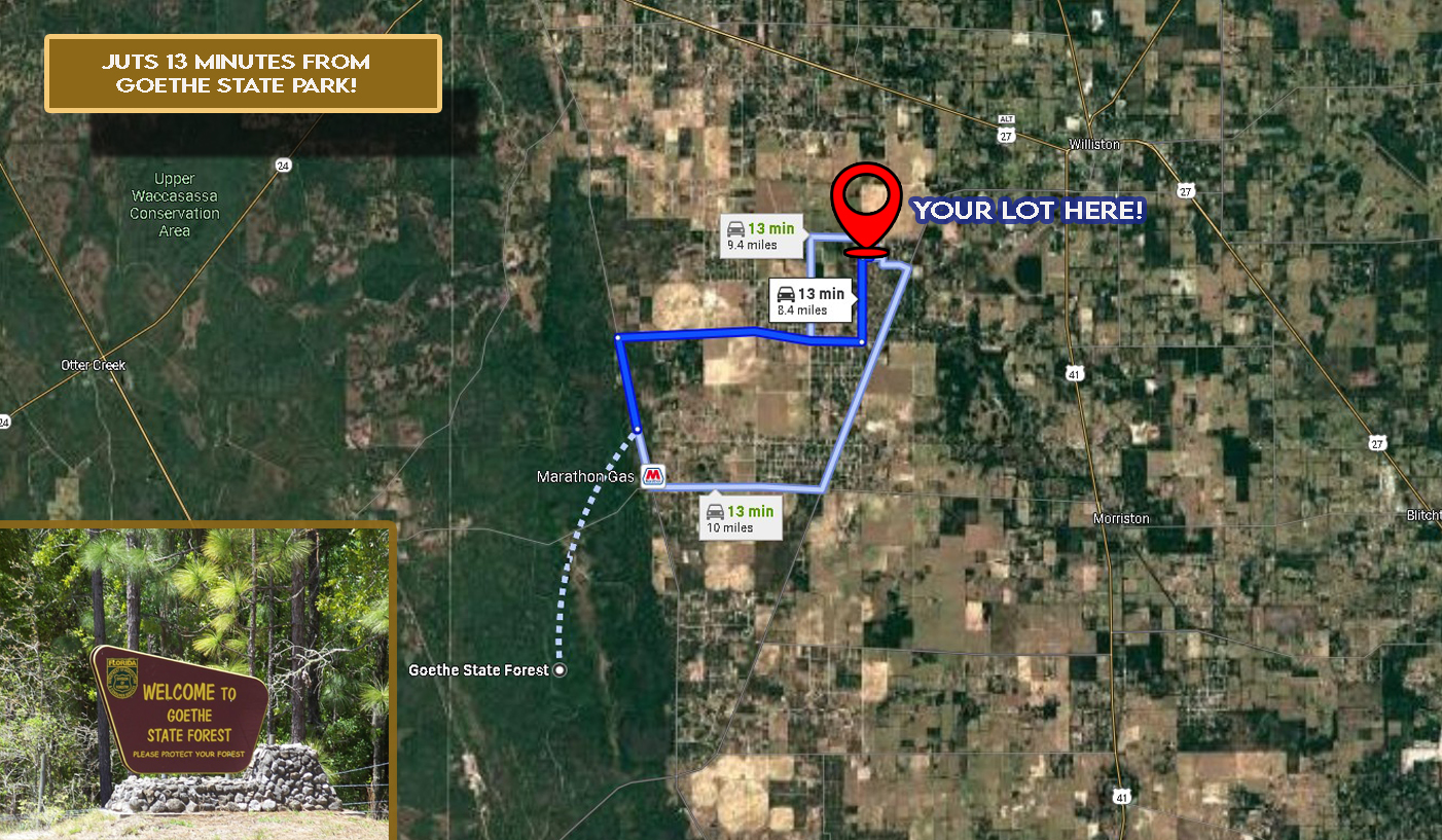 The level lot is ready for your dream build and offers quiet privacy while being just 10 minutes from downtown Williston and 13 minutes from Goethe State Forest, giving you easy access to trails, horseback riding, hunting, and outdoor adventures.