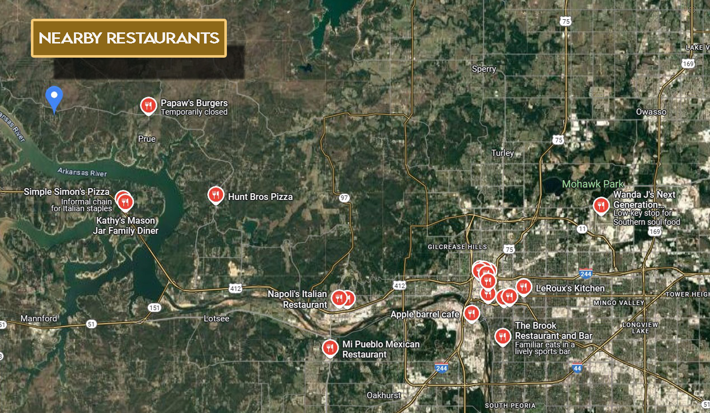 • Water: Water available at the road: Frontier Shores Water Department (918) 354-2200