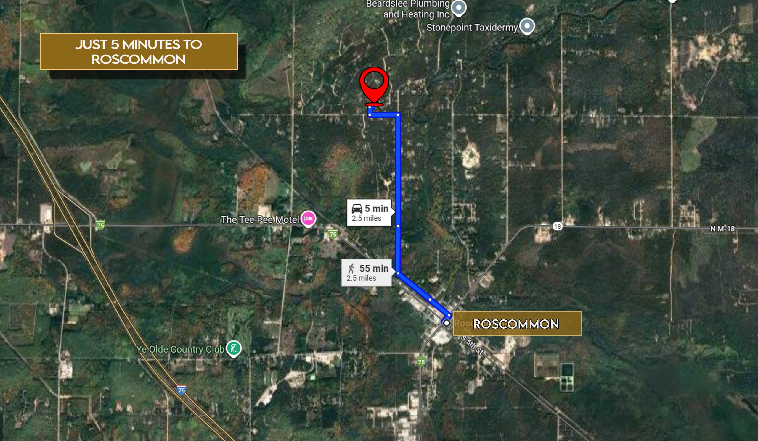 Owner financing is available with low down payments and affordable monthly terms, making this property within reach. Located just 5 minutes from Roscommon via S Stephan Bridge Rd, you’ll enjoy quick trips to shops, dining, and services. Outdoor enthusiasts will love being only 8 minutes from Higgins Lake for boating, fishing, and swimming, and 15 minutes from Ye Olde Country Club for golf. Power is available at the street, with options for well and septic installation to suit your plans. Crawford County continues to see steady growth and investment, making this an excellent long-term buy.