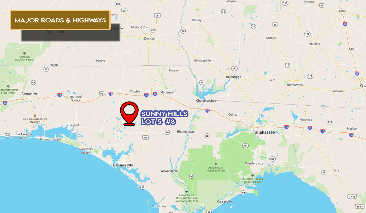 Located in Sunny Hills Unit 8, Washington County, Florida, this lot is approximately 46 minutes via FL-79 N to the heart of Panama City and just 4 minutes to the beautiful Sunny Hills Golf & Country Club, a popular destination known for its wide fairways and relaxing atmosphere — perfect for golf lovers and nature enthusiasts alike.