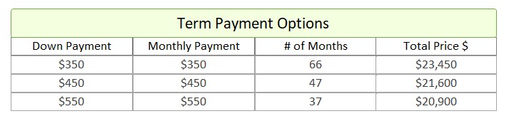 • Term Option 2: $450 down, $450 for 47 months, for a total price of $21,600